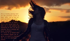 Overgeven aan en aanvaarding van wat is en tegelijkertijd trouw blijven aan mijn intuïtie zonder de drang te voelen om te bewijzen dat het klopt.